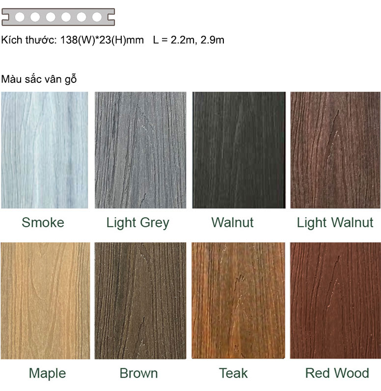 Màu sắc sàn gỗ nhựa ngoài trời đặc EW-C01: